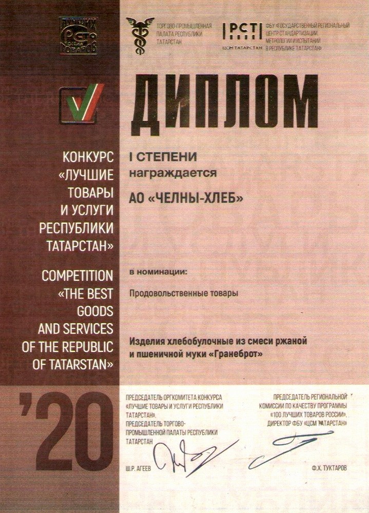 Компания «ЧЕЛНЫ-ХЛЕБ» ежегодно принимает участие в конкурсах на уровне Республики Татарстан и Российской Федерации. Гордимся, что наша продукция стабильно занимает призовые места