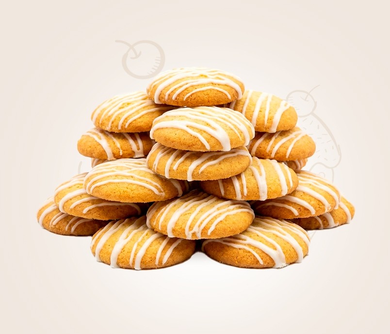 Пшеничная хлебопекарная мука высшего сорта, маргарин (рафинированные дезодорированные масла в натуральном и модифицированном виде (пальмовое масло и его фракции, подсолнечное масло), вода питьевая, эмульгаторы (Е471, соевый лецитин), соль пищевая, ароматизатор «Сливки-молоко», краситель Е160a, регулятор кислотности: лимонная кислота), сахар белый, глазурь кондитерская белая (сахар белый, заменитель какао-масла лауринового типа (гидрогенизированное пальмоядровое масло, эмульгаторы: Е322, Е492), сыворотка молочная сухая, мальтодекстрин, эмульгаторы (лецитин соевый, сорбитан тристеарат, эфиры полиглицерина и взаимоэтерифицированных рициноловых кислот), соль пищевая, краситель Е171, ароматизатор «Ванилин»), вода питьевая, меланж, масло подсолнечное рафинированное дезодорированное , разрыхлители: гидрокарбонат натрия, гидрокарбонат аммония; соль пищевая, ароматизатор «Ванилин».