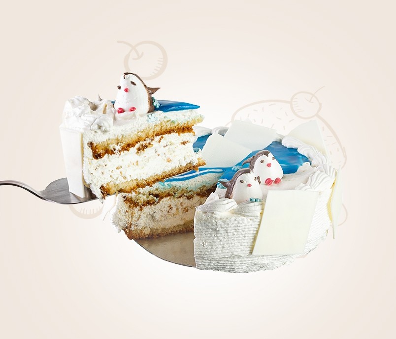 Сахар белый, вода питьевая, крем на растительных маслах (вода питьевая, жир растительный пальмоядровый, сахар белый, белок молочный, эмульгаторы(Е420ii, Е472е, Е322, Е435), стабилизаторы (Е463, Е401), соль, ароматизатор, краситель бета-каротин), меланж яичный, начинка кондитерская «Сгущенка»(сахар белый, молоко обезжиренное, сыворотка молочная сухая, заменитель молочного жира (рафинированные, дезодорированные растительные масла в натуральном и модифицированном виде: пальмовое и его фракции, подсолнечное; антиокислитель- концентрат смеси токоферолов), мальтодекстрин, стабилизатор (Е1442, каррагинан), ароматизатор пищевой (масло сладкосливочное, концентрат сывороточного белка, ароматизатор пищевой «Сливки», ароматизатор пищевой натуральный «Сливочное масло», стабилизатор Е415, эмульгатор Е476, консервант Е202), лактоза), мука пшеничная хлебопекарная в/с, глазурь кондитерская белая (сахар белый, заменитель какао-масла: гидрогенизированная пальмовая фракция, молоко сухое обезжиренное, эмульгатор: Е322, ароматизатор:«Ванилин»), глазурь нейтральная (сироп глюкозный, вода питьевая, сахар белый, загустители(пектин, ксантановая камедь), регуляторы кислотности(кислота лимонная, цитрат калия), консервант: сорбат калия, уплотнитель: хлорид кальция ), ядро арахиса обжаренное, масло сливочное (сливки пастеризованные), спред растительно-сливочный (заменитель молочного жира (рафинированные дезодорированные растительные масла в натуральном и модифицированном виде, в том числе соевое; эмульгаторы: моно-диглицериды жирных кислот, соевый лецитин; антиокислители:Е304,Е307; краситель: Е160а), сливки пастеризованные, сахар белый, эмульгатор Е 322, консервант: сорбат калия, ароматизатор), белок яичный сухой, сок яблочный осветленный, комлексная пищевая добавка (вода питьевая, эмульгаторы: Е471, Е475, Е470, сахар белый, агент влагоудерживающий Е1520, консервант Е202), пекарский порошок (разрыхлители: пирофосфат натрия кислый, гидрокарбонат натрия; крахмал кукурузный), желирующий агент: агар, регулятор кислотности: кислота лимонная, консервант: кислота сорбиновая, ароматизатор «Ванилин», краситель натуральный «Михрома голубой».