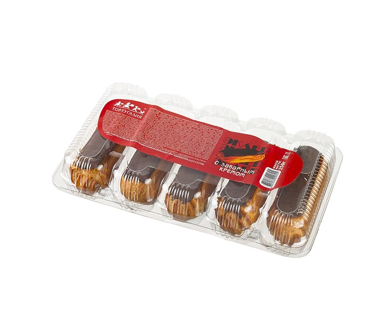Вода питьевая, меланж яичный, мука пшеничная хлебопекарная в/с, начинка кондитерская «Сгущенка»(сахар белый, молоко обезжиренное, сыворотка молочная сухая, заменитель молочного жира (рафинированные, дезодорированные растительные масла в натуральном и модифицированном виде: пальмовое и его фракции, подсолнечное; антиокислитель- концентрат смеси токоферолов), мальтодекстрин, стабилизатор (Е1442, каррагинан), ароматизатор пищевой (масло сладкосливочное, концентрат сывороточного белка, ароматизатор пищевой «Сливки», ароматизатор пищевой натуральный «Сливочное масло», стабилизатор Е415, эмульгатор Е476, консервант Е202), лактоза), кондитерская глазурь (сахар белый, заменитель какао-масла: гидрогенизированная пальмовая фракция, антиокислитель: Е306; какао-порошок, эмульгаторы: Е322, Е476; ароматизатор «Ванилин»), маргарин (рафинированные дезодорированные масла в натуральном и модифицированном виде (пальмовое масло и его фракции, подсолнечное масло), вода питьевая, эмульгаторы: Е471, Е322; соль пищевая, краситель: Е160а, ароматизатор, регулятор кислотности: кислота лимонная), смесь сухая для приготовления заварного крема (сахар белый, загуститель: Е1414, Е401; молоко сухое цельное, стабилизаторы: Е339ii. Е 450iii; ароматизатор, краситель: Е160а, уплотнитель: Е516), крем на растительных маслах для взбивания (вода питьевая, заменитель масла-какао нетемперируемый лауринового типа (рафинированное, дезодорированное пальмоядровое масло в натуральном и модифицированном виде, эмульгатор Е322), глюкозный сироп, глюкоза кристаллическая, комлексная пищевая добавка (стабилизаторы : Е481, Е464, Е466; агент антислеживающий Е460i, эмульгатор: Е475, антиокислители: Е386, Е304i), эмульгатор Е435, регулятор кислотности Е331iii, соль пищевая, комлексная пищевая добавка (подсластители: Е952, Е954), ароматизатор); молоко сухое цельное, сахар белый, консервант: сорбиновая кислота, соль пищевая.