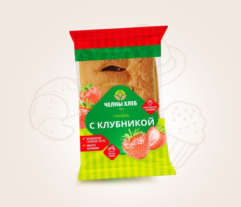 Воздушное слоеное изделие, приготовленное на густой опаре, с богатой начинкой из натуральной клубники и кусочков свежих ягод. Тесто приготовлено по классической технологии, что обеспечивает легкую структуру. Много начинки и натуральный вкус делают эту слойку отличным выбором для завтрака или десерта, радуя насыщенным ароматом и свежестью.