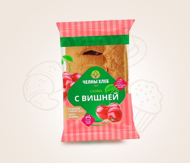 Воздушное слоеное изделие с богатой начинкой из натуральной вишни и кусочков свежих ягод. В основе — мягкое, легкое тесто, приготовленное по классической технологии с густой опарой. Начинка состоит полностью из 100% натуральных ингредиентов. Идеально для завтрака или десерта, радуя насыщенным вкусом и ароматом свежих ягод.