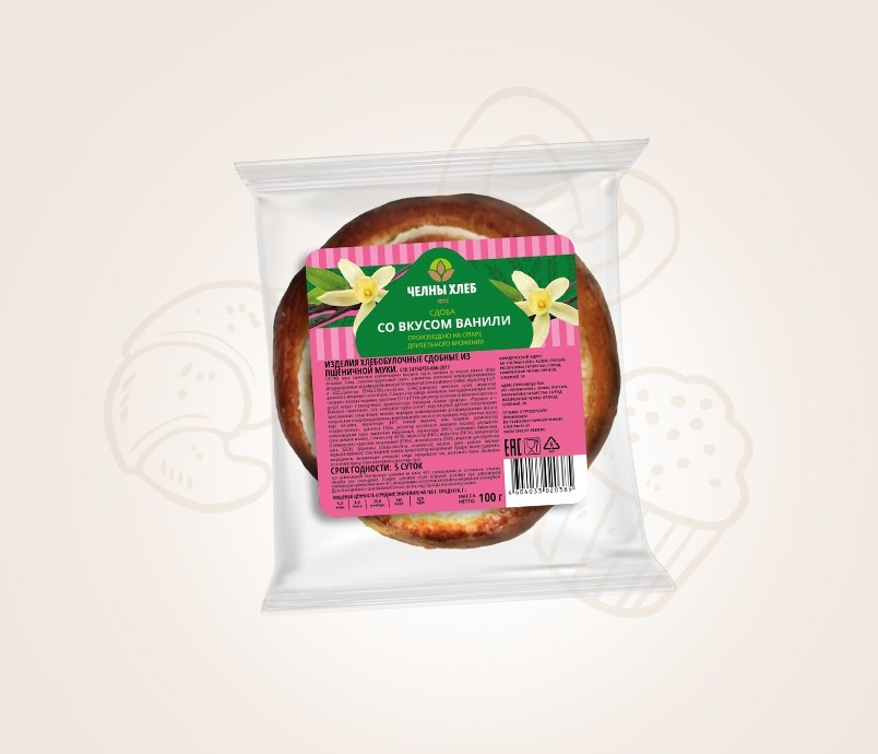 Мука пшеничная хлебопекарная высшего сорта; начинка со вкусом ванили (вода питьевая, сахар, глюкозно-фруктозный сироп, заменитель молочного жира(рафинированные дезодорированые модифицированные растительные масла пальмовое и соевое, эмульгатор E 471 и E322,краситель E160b,E100),загуститель E1442,сыворотка молочная сухая, эмульгатор целлюлоза микрокристаллическая, стабилизатор камедь целлюлозы, влагоудерживающий агент глицерин, волокна пищевые, красители E471b E 160а,регулятор кислотности молочная кислота и цитрат натрия 3-замещенный, ароматизаторы стабикрим «Сливки премиум», «Рованил» и « Ванильно- сливочный», соль, консервант сорбат калия) ; вода питьевая; дрожжи хлебопекарные прессованные; сахар белый; меланж; маргарин (рафинированные дезодорированные масла в натуральном и модифицированном виде(пальмовое масло и его фракции, подсолнечное масло) вода питьевая, эмульгаторы (Е471, соевый лецитин), соль пищевая, ароматизатор «Сливки-молоко», краситель Е160a, регулятор кислотности лимонная кислота); улучшитель хлебопекарный (мука пшеничная набухающая, эмульгаторы (Е471), клейковина пшеничная, сухое цельное молоко, стабилизатор (Е170), эмульгатор (Е481), эмульгатор (Е472е), ароматизатор (этилванилин), краситель натуральный (Е160а), антиокислитель (Е300), вещество для обработки муки (Е920), ферменты (альфа-амилазы, ксиланаза)); молоко сухое цельное (молоко нормализованное); соль пищевая; ароматизатор «Ванилин».