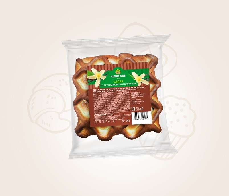 Мука пшеничная хлебопекарная высшего сорта; начинка кондитерская со вкусом ванили (вода питьевая, сахар, глюкозно-фруктозный сироп, заменитель молочного жира (рафинированные дезодорированные модифицированные растительные масла пальмовое и соевое, эмульгатор E 471 и E322,краситель E160b, E100), загуститель E1442,сыворотка молочная сухая, эмульгатор целлюлоза микрокристаллическая, стабилизатор камедь целлюлозы, влагоудерживающий агент глицерин, волокна пищевые, красители E171 и E 160а, регулятор кислотности молочная кислота и цитрат натрия 3-замещенный, ароматизаторы стабикрим «Сливки премиум», «Рованил» и «Ванильно-сливочный», соль, консервант сорбат калия); начинка кондитерская со вкусом шоколада (вода питьевая, сахар, масло пальмовое (масло пальмовое рафинированное дезодорированное отбеленное, антиокислитель: концентрат смеси токоферолов Е306), крахмал кукурузный, сыворотка молочная сухая, влагоудерживающий агент (глицерин), стабилизаторы (камедь целлюлозы, ксантовая камедь, цитрат натрия 3-замещенный), какао-порошок, ароматизатор «Горький шоколад», регулятор кислотности (лимонная кислота), консервант (сорбат калия), красители (Е153,Е 155)); вода питьевая; сахар белый; меланж; маргарин (рафинированные дезодорированные масла в натуральном и модифицированном виде (пальмовое масло и его фракции, подсолнечное масло), вода питьевая, эмульгаторы (Е471, соевый лецитин), соль пищевая, ароматизатор «Сливки-молоко», краситель Е160a, регулятор кислотности лимонная кислота); дрожжи хлебопекарные прессованные; комплексная пищевая добавка: улучшитель хлебопекарный (мука пшеничная набухающая, эмульгаторы (Е471), клейковина пшеничная, сухое цельное молоко, стабилизатор (Е170), эмульгатор (Е481), эмульгатор (Е472е), ароматизатор (этилванилин), краситель натуральный (Е160а), антиокислитель (Е300)); молоко сухое цельное (молоко нормализованное); соль пищевая; ваниль ароматизатор натуральный.