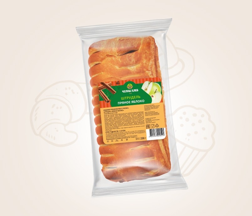 Мука пшеничная хлебопекарная высшего сорта; наполнитель яблоко с корицей (сахар белый, вода питьевая, яблоко сублимированное, загустители (Е1442,Е418), регуляторы кислотности (Е330,Е331), молотая корица, консервант Е202, ароматизатор); маргарин для слоеных изделий (рафинированные дезодорированные масла в натуральном и модифицированном виде (пальмовое масло и его фракции, подсолнечное масло), вода питьевая, эмульгаторы (Е471, Е475, соевый лецитин), соль пищевая, консервант Е202, краситель Е160а, регулятор кислотности лимонная кислота, ароматизатор); вода питьевая; сахар белый; маргарин столовый (рафинированные дезодорированные масла в натуральном и модифицированном виде (пальмовое масло и его фракции, подсолнечное масло), вода питьевая, эмульгаторы (Е471, соевый лецитин), соль пищевая, ароматизатор «Сливки-молоко», краситель Е160а, регулятор кислотности лимонная кислота); дрожжи хлебопекарные прессованные; соль пищевая; улучшитель хлебопекарный (пшеничная клейковина, эмульгатор (Е472е), антиокислитель (Е300)). Содержит глютен. Может содержать следы продуктов переработки сои, молочного и яичного белка, кунжута.