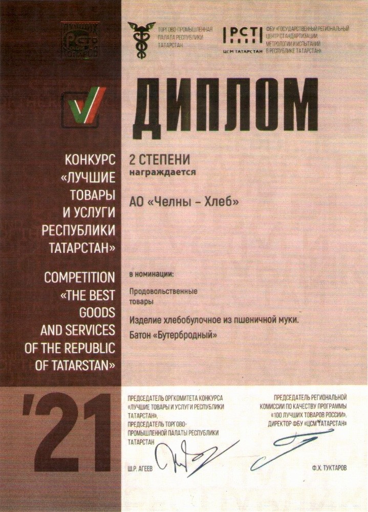 Компания «ЧЕЛНЫ-ХЛЕБ» ежегодно принимает участие в конкурсах на уровне Республики Татарстан и Российской Федерации. Гордимся, что наша продукция стабильно занимает призовые места