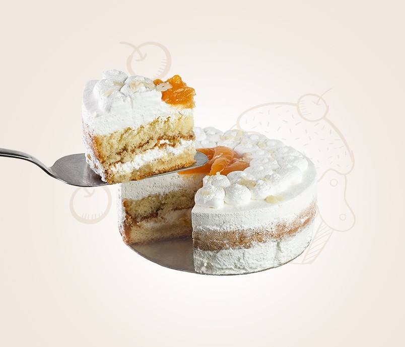 Крем на растительных маслах для взбивания (вода питьевая, заменитель масла-какао нетемперируемый лауринового типа (рафинированное, дезодорированное пальмоядровое масло в натуральном и модифицированном виде, эмульгатор Е322), глюкозный сироп, глюкоза кристаллическая, комлексная пищевая добавка (стабилизаторы : Е481, Е464, Е466; агент антислеживающий Е460i, эмульгатор: Е475, антиокислители: Е386, Е304i), эмульгатор Е435, регулятор кислотности Е331iii, соль пищевая, комлексная пищевая добавка (подсластители: Е952, Е954), ароматизатор); вода питьевая, сахар белый, меланж яичный, мука пшеничная хлебопекарная в/с, сухая смесь для приготовления крема «Со вкусом йогурта» (пудра сахарная, крахмал кукурузный, молоко сухое обезжиренное, загустители: Е415, Е401; регулятор кислотности: кислота лимонная, порошок йогуртовый: (сухое обезжиренное молоко, закваска), ароматизаторы: «Сливки», «Йогурт»), консервы фруктовые «Персики в сиропе» (персики очищенные , вода питьевая, сахар белый, регулятор кислотности: лимонная кислота), начинка фруктовая «Абрикосовая» (сахар белый, пюре фруктовое, стабилизатор Е1442, пищевые волокна, регуляторы кислотности Е330, Е331iii. Консервант Е200, краситель натуральный пищевой Е 160а, ароматизатор пищевой «Абрикос»), начинка кондитерская «Сгущенка»(сахар белый, молоко обезжиренное, сыворотка молочная сухая, заменитель молочного жира (рафинированные, дезодорированные растительные масла в натуральном и модифицированном виде: пальмовое и его фракции, подсолнечное; антиокислитель- концентрат смеси токоферолов), мальтодекстрин, стабилизатор (Е1442, каррагинан), ароматизатор пищевой (масло сладкосливочное, концентрат сывороточного белка, ароматизатор пищевой «Сливки», ароматизатор пищевой натуральный «Сливочное масло», стабилизатор Е415, эмульгатор Е476, консервант Е202), лактоза), лепестки арахиса, комплексная пищевая добавка (вода питьевая, эмульгаторы: Е471, Е475, Е470, сахар белый, агент влагоудерживающий Е1520, консервант Е202), вино столовое (виноград, консерванты: Е200, Е220), пекарский порошок (разрыхлители: пирофосфат натрия кислый, гидрокарбонат натрия; крахмал кукурузный), консервант: кислота сорбиновая, регулятор кислотности: кислота лимонная, ароматизаторы «Ванилин», «Ромовый».
